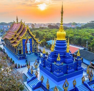 Meno conosciuto ma altrettanto spettacolare, il Wat Rong Suea Ten, o Tempio Blu, è un'esplosione di colori con sfumature di blu elettrico e oro. All'interno, il gigantesco Buddha bianco e gli affreschi dettagliati creano un'atmosfera mistica e affascinante. Perfetto per scattare foto incredibili e perdersi tra le sue decorazioni uniche.Ti lasciamo il link al tour con GetYourGuide: https://gyg.me/rtW8sLMX